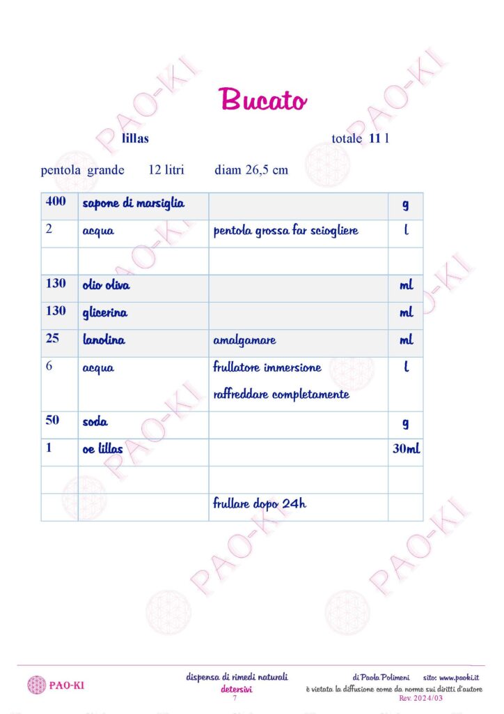 bucato – Laboratorio di detersivi naturali – guarda il video come fare guarda il video ricetta breve DETERSIVI – DISPENSA DI RIMEDI NATURALI – è vietata la diffusione come da norme sui diritti d’autore